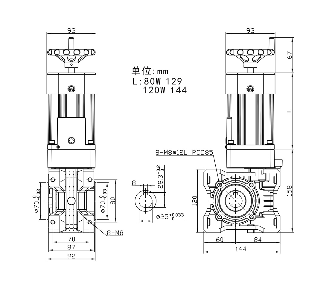 基本参数 电压:AC200V-240V 输出功率:80W/120W 电机极数:4P 频率:50/60Hz 电流:0.7A/0.9 绝缘等级:F级 闸杆起落时间:2S-6S 运行寿命:≥500万次 工作环境 温度范围:-30℃~+70℃ 温度:85%以下 海拔:1000M以下 应用范围 主要适用于直杆、折弯杆、栅栏杆道闸机的驱动